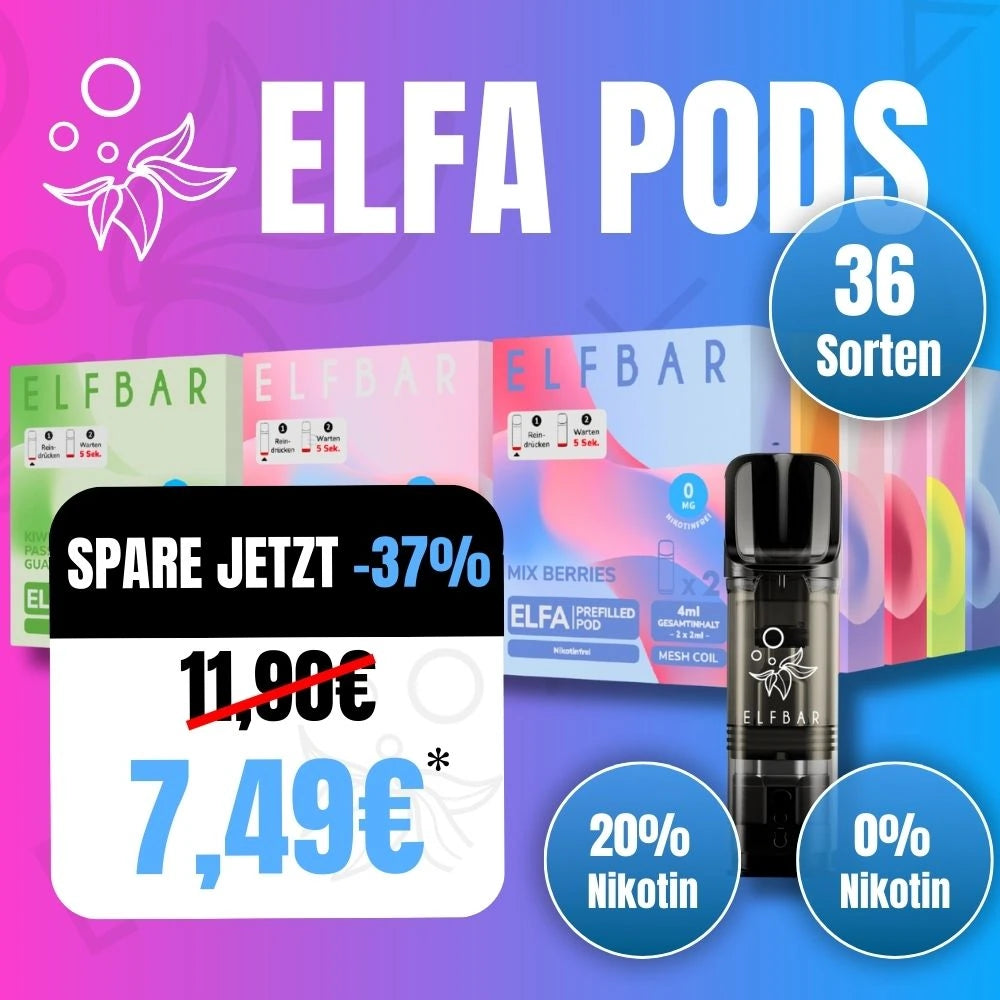 Elfbar-vapes.eu ist Deutschlands Fachhändler für originale Elfbar und Lost Mary Vapes. Mit über 36 Sorten, TPD2-konformen ELFA Pods und blitzschnellem DHL-Versand bieten wir maximale Sicherheit und Geschmack für Dampfer.